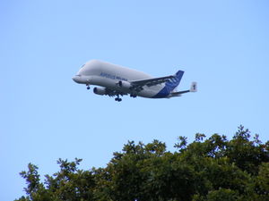 Airbus Beluga Super Transporter '1' flies over Blacon on its Runway 23 approach